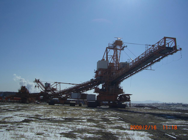 我公司早在上世紀九十年代就與曼塔克拉夫公司合作制造斗輪挖掘機,現(xiàn)服務(wù)于平莊煤業(yè)元寶山露天煤礦,生產(chǎn)能力3600m3/h,從1992年投產(chǎn)直至今日,建立了良好的用戶口碑。該斗輪挖掘機為大型采礦型,線性尺寸大,可以完成組合采高40m。適用于開采工作面高且強度大的作業(yè)區(qū)域,可以減少工作面帶式輸送機的數(shù)量,便于連續(xù)開采工藝管理。