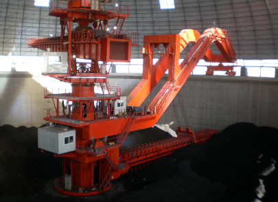 頂堆側(cè)取堆取料機采用定點堆料和分區(qū)分層側(cè)式刮板取料工藝,主要用于煤炭、礦山、電力、冶金等行業(yè)中堆取礦石、煤等以倉儲為主、無均化要求的散狀物料。