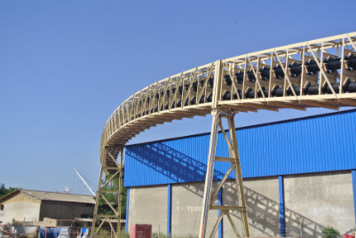 圓管帶式輸送機(jī)是傳統(tǒng)帶式輸送機(jī)的升級(jí)產(chǎn)品,具有不受空間和角度限制及完全封閉高環(huán)保性能的特點(diǎn)。隨著江蘇永鋼集團(tuán)48°大傾角水平轉(zhuǎn)彎圓管帶式輸送機(jī)、寶鋼圓管輸送系統(tǒng)以及塞內(nèi)加爾GCO圓管帶式輸送系統(tǒng)等多個(gè)項(xiàng)目相繼投產(chǎn)使用,我公司已擁有一整套成熟的、具有自主知識(shí)產(chǎn)權(quán)和專利的圓管帶式輸送機(jī)技術(shù),可設(shè)計(jì)和制造管徑為Φ100~Φ650mm系列產(chǎn)品。