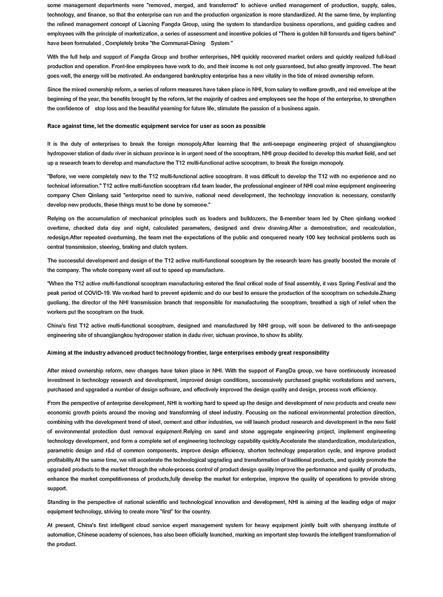 Liaoning fangda group NHI independent design, development and manufacturing The first multifunctional scooptram in China has been successfully tested