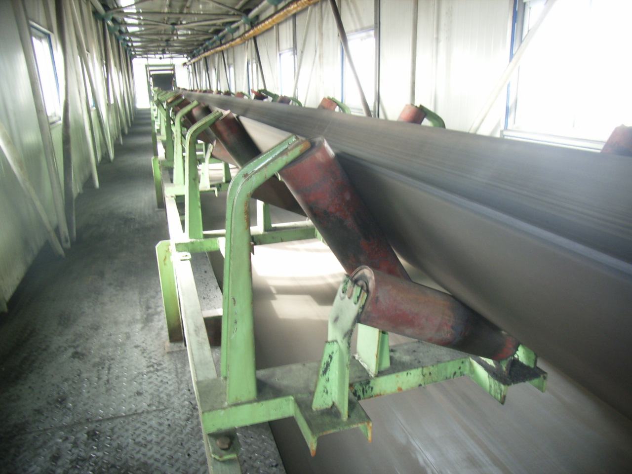 我公司所生產(chǎn)的帶式輸送機,首先是運行可靠,在許多需要連續(xù)運行的重要的生產(chǎn)單位,如發(fā)電廠煤的輸送,鋼鐵廠和水泥廠散狀物料的輸送,以及港口內(nèi)船舶裝卸等均采用帶式輸送機。其特點動力消耗低,使用過程中阻力小,對貨物的磨損和破壞均小,生產(chǎn)效率高。不僅在煤廠、鋼鐵廠和礦廠運用輸送機,還在小型隧道內(nèi)均可以使用,長度短則幾米,長可達10米以上,也可以架設在地面交通混亂和危險地區(qū)的上空。如在一點或多點受料.也可以向多點或幾個區(qū)段卸料,需要時,還能把各堆不同的物料進行混合。